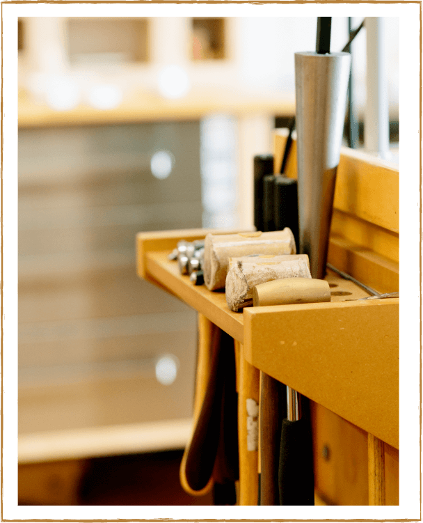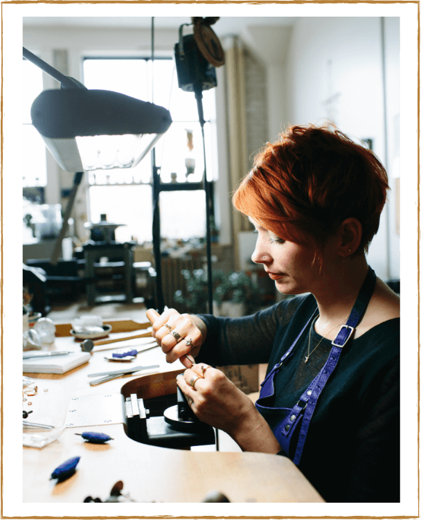 All of the jewelry we make in our studio is handmade with 100% recycled metals, with the exception of the delicate chains that we purchase from trusted sources. We primarily source our metals from Hoover and Strong, a US based SCS certified green refinery. Our gemstones are ethically sourced and our diamonds are conflict-free.