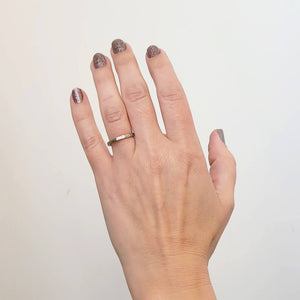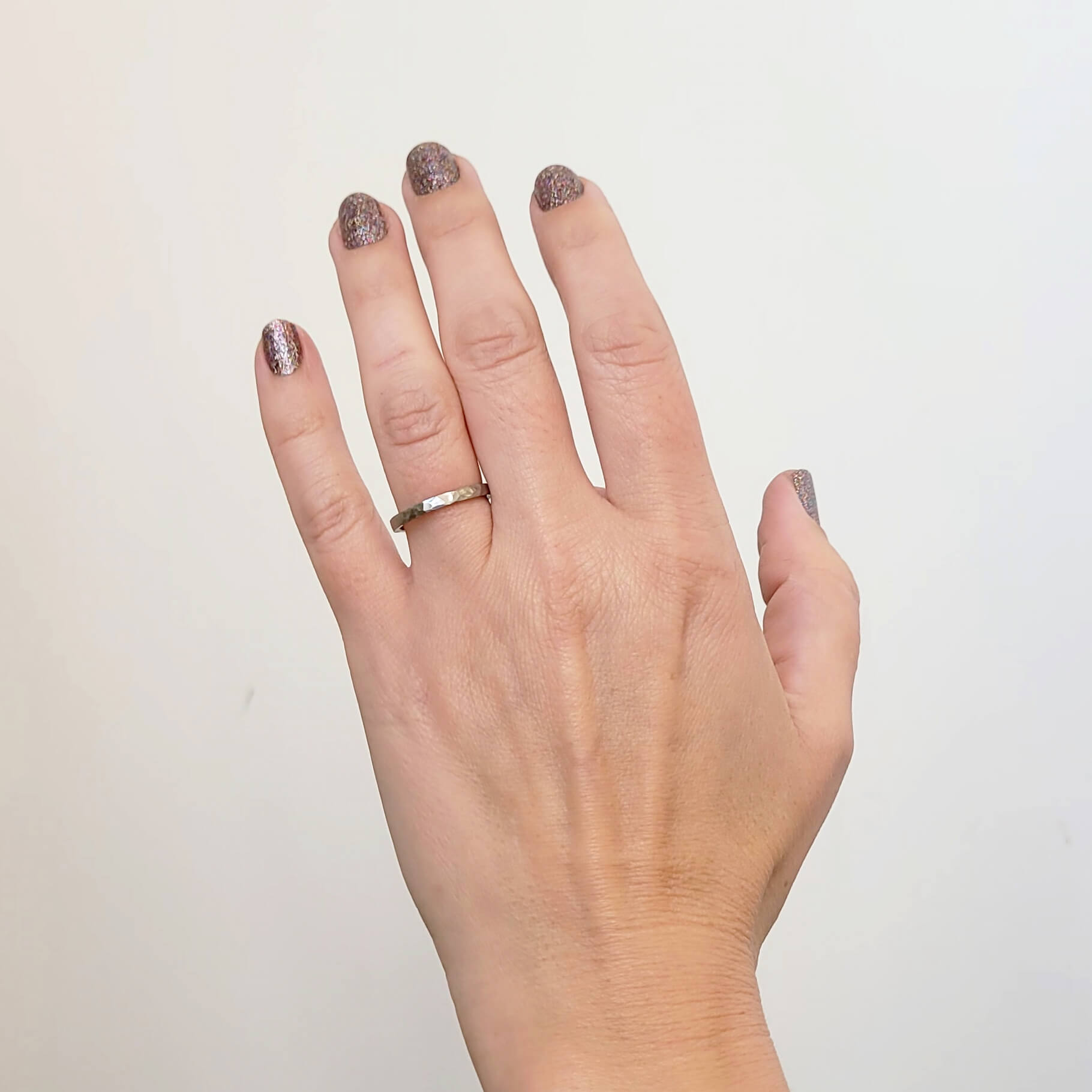 Simple and modern warm rose gold band with a hammered finish, perfect for a wedding band or ring stack.