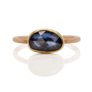 Organic Shaped Blue Rose Cut Sapphire Ring in Yellow and Rose Gold